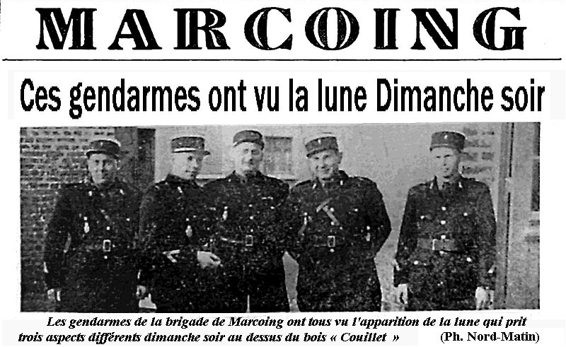 On peut penser que le colonel ne comprit pas non plus que c'était tout bêtement la lune, puisque l'un des témoins, le gendarme Fauquembergues (et non Faucambergue) fut plus tard promu adjudant, et revint à Marcoing pour commander la brigade. Nos tentatives pour le contacter furent, à l'époque, restés infructueuses.
