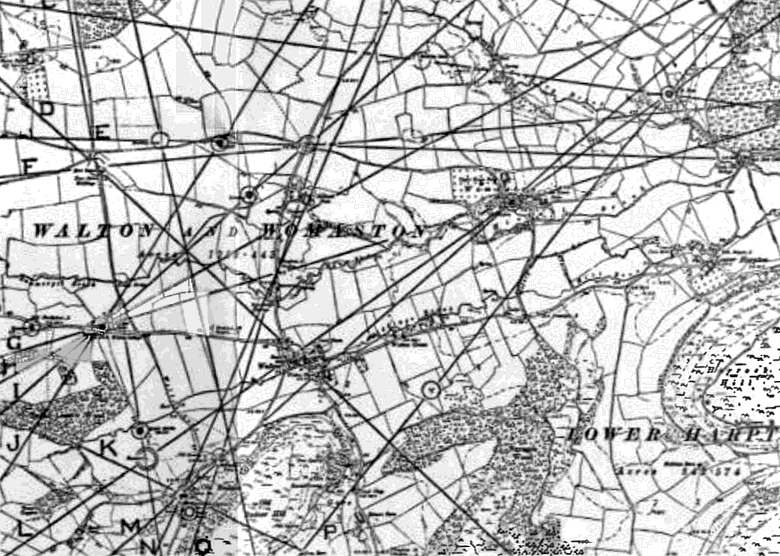 (1} Aucune ligne droite ne peut être déterminée sur la carte par des lieux portant le même nom, même si celui-ci est fréquemment employé.